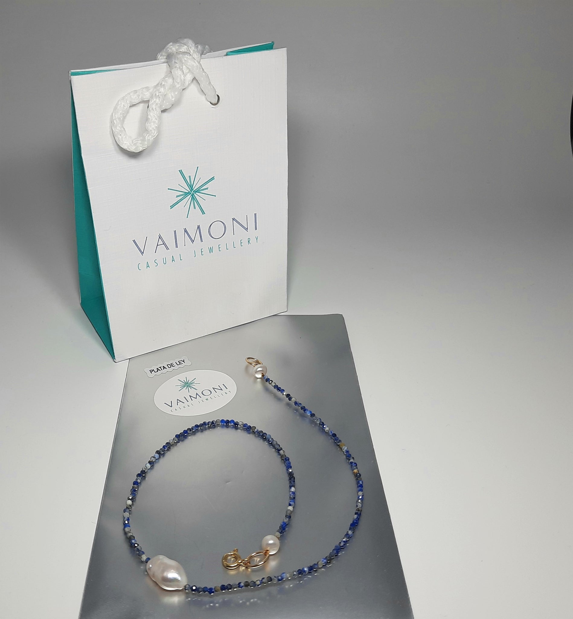 Collar realizado artesanalmente con diversos abalorios. Los cierres son de plata de ley 925. Diseño original VAIMONI. Largo 35 cm. Se incluye bolsa de regalo y envío GRATIS.