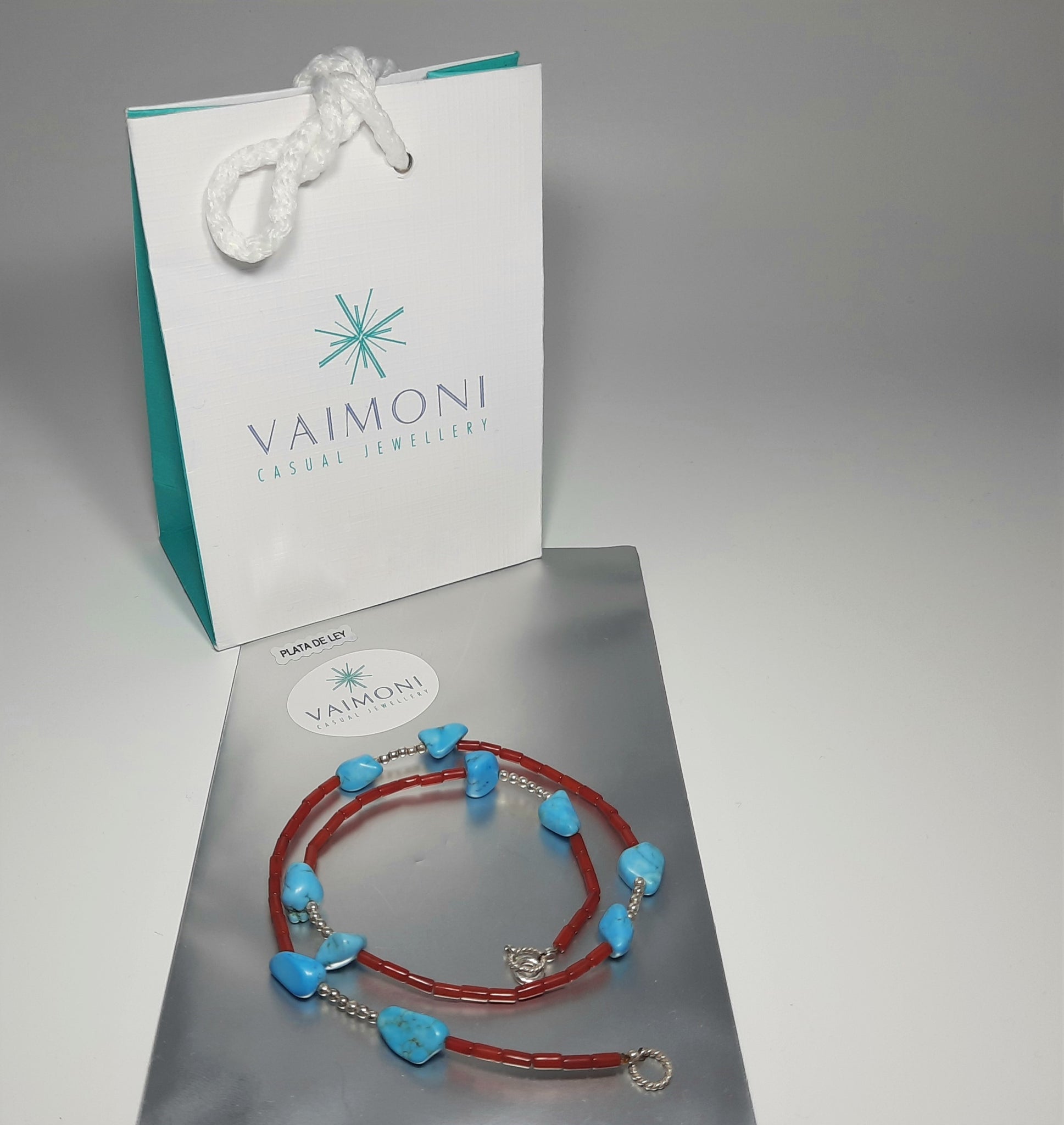 Collar realizado artesanalmente con diversos abalorios. El cierre es de plata de ley 925. Diseño original VAIMONI. Peso aprox.: 9,7 gr. Largo 40 cm. Bolsa de regalo y envío GRATIS.