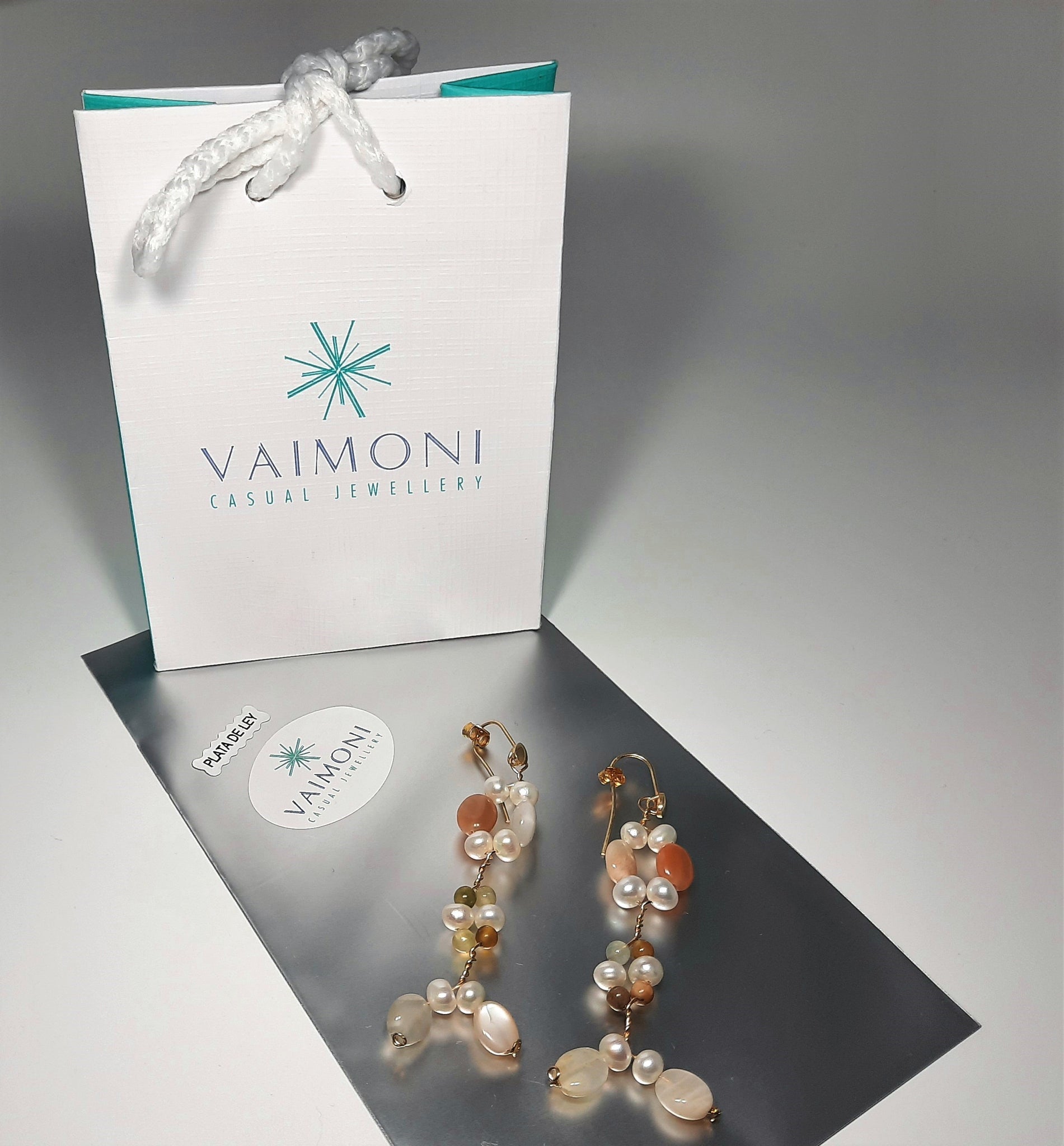 Pendientes realizados artesanalmente. Diseño original VAIMONI. Largo 6 cm. Peso 2,6 gr. Los cierres son de plata de ley 925. Se incluyen bolsa de regalo y envío GRATIS.