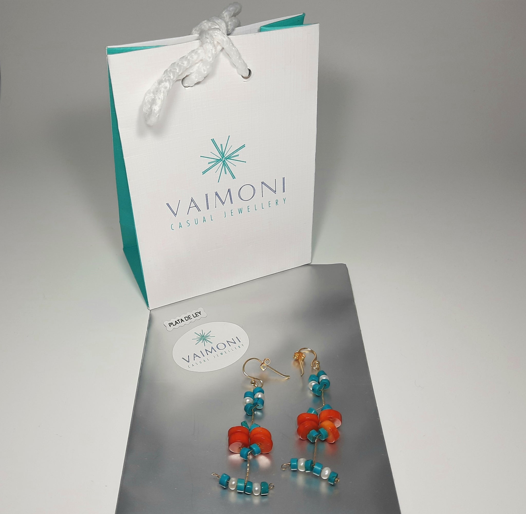 Pendientes realizados artesanalmente. Diseño original VAIMONI. Largo 5 cm. Peso aprox. 1,6. Se incluyen bolsa de regalo y envío GRATIS.