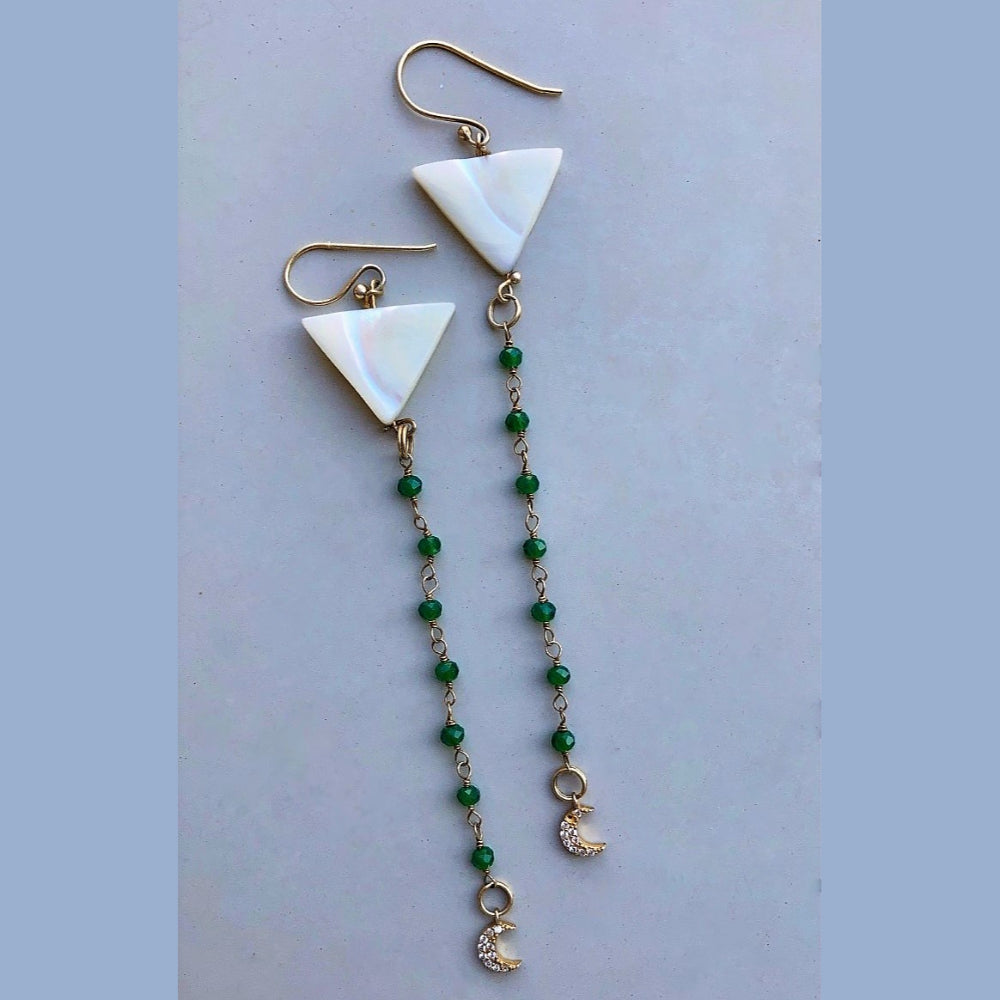 Pendientes realizados artesanalmente. Diseño original VAIMONI. Peso aprox.: 1,5 gr. unidad. Largo 9 cm. Se incluyen bolsa de regalo y envío GRATIS.
